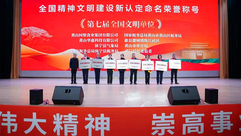 2026年1月18日下午,由中共黃山市委宣傳部主辦,歙縣縣委宣傳部協(xié)辦的“文明之光 德耀黃山”2025年黃山市精神文明建設(shè)成果交流展示活動在歙縣舉行。會上,市政協(xié)副主席洪祖根為我公司獲評“第七屆全國文明單位”授牌。
